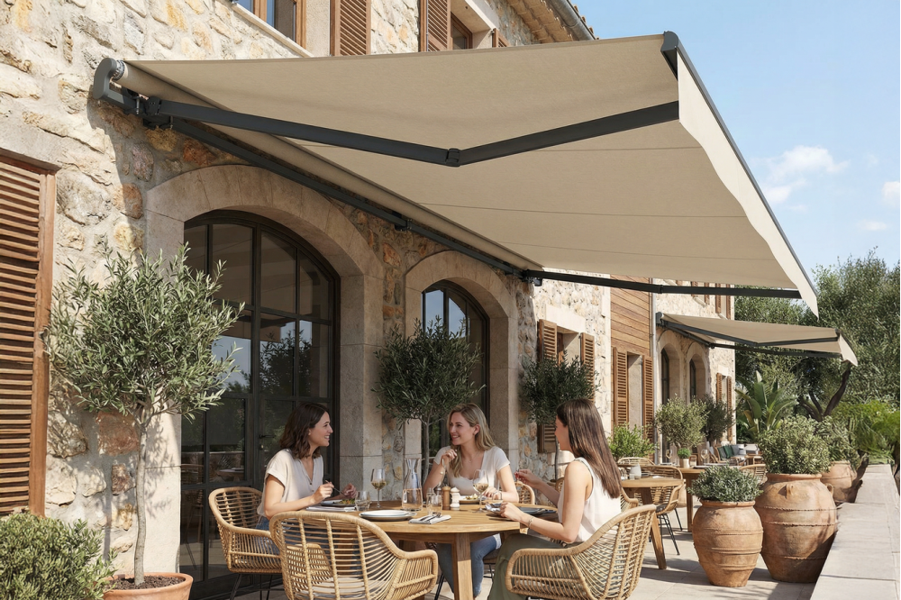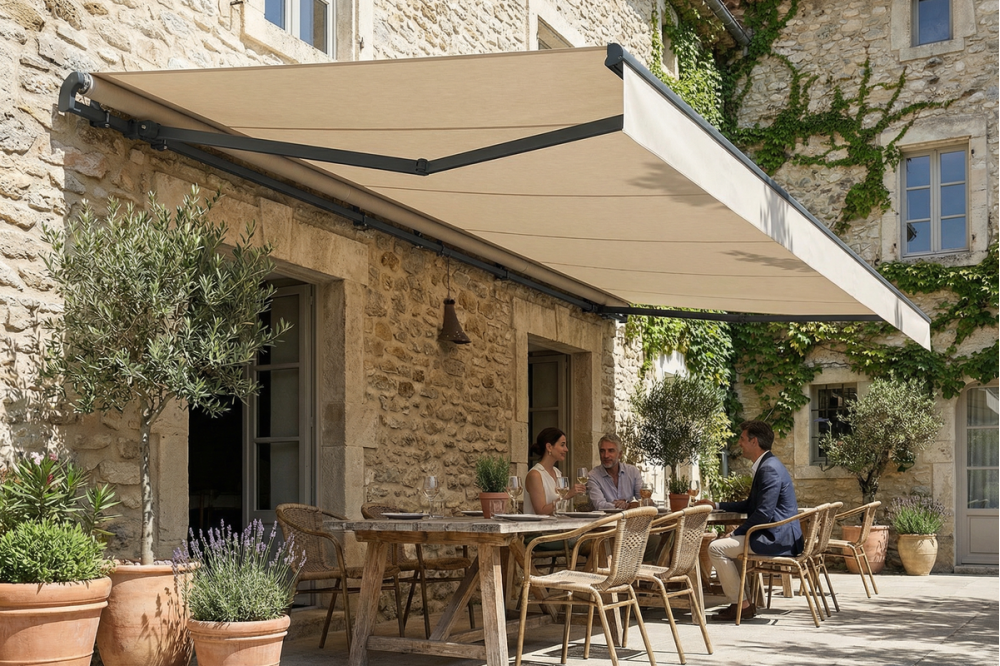 Store banne monobloc : grande terrasse